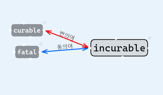 유의어는 파란색 양쪽 화살표로 지정했다.