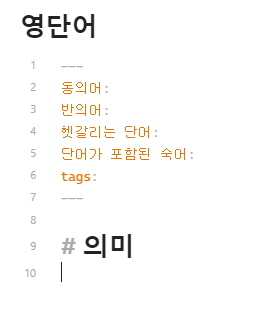 위와 같이 필드를 작성해 템플릿을 만들고 단어를 작성할 때마다 불러와서 내용을 작성했다.